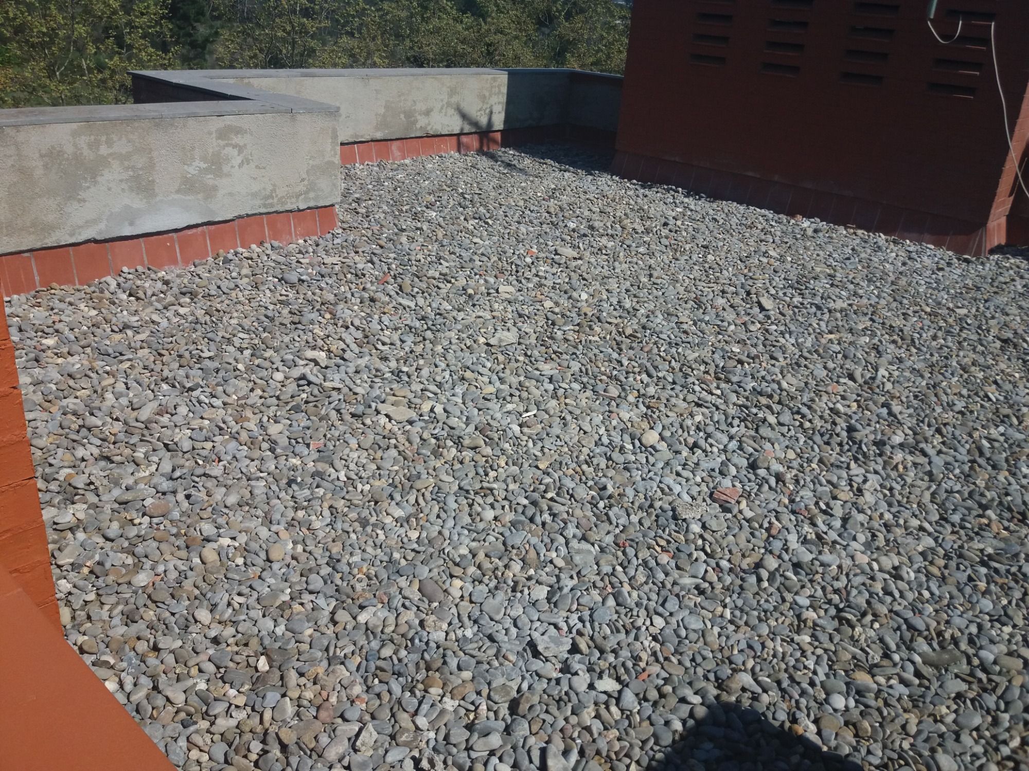El trabajo que se realizó consistió en pavimentar la terraza de la cubierta, sacando las piedras existentes y colocar tela para evitar filtraciones. También se dio una mano de imprimación.